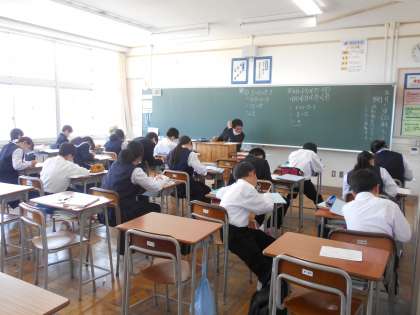 1年・授業風景・その1 公開日 2023/05/12 更新日 2023/05/12 1学年 5月12日(金) 3限 ゴールデンウィーク明けの今週も、最終日になりました。 1年生は中学校生活にも随分慣れ、今日も元気よく歌ったり、課題に一生懸命取り組んだりしています。 (写真 上:1年1組 音楽 中,下:1年2組 数学)