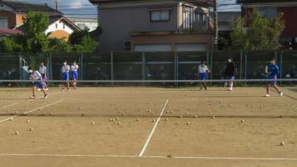 5月15日(月) 16:30 テニスコートでは、男女ソフトテニス部が黙々と練習しています。