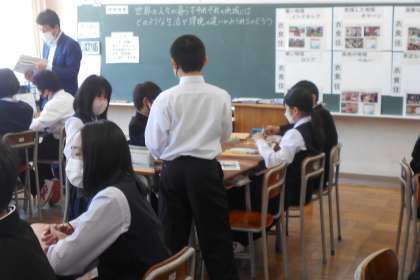 社会 1年3組(教室)岸本先生「世界のさまざまな生活と環境」