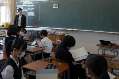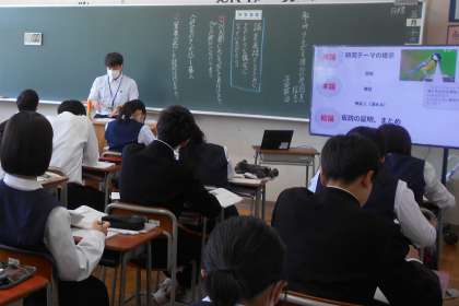 国語 2年4組(教室)江良先生「クマゼミ増加の原因を探る」