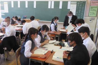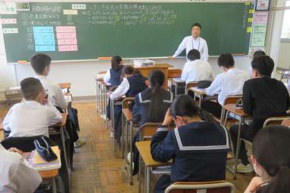 学校訪問研修会・その9 公開日 2023/05/16 更新日 2023/05/16 山室中学校のページ 5月16日(火) 4限 (写真:上) 数学 3年1組(教室)山口先生「多項式の計算」 (写真:下) 国語 3年2組(教室)竹林先生「握手」
