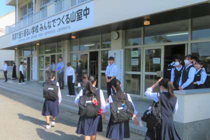 朝の登校風景 公開日 2023/05/17 更新日 2023/05/17 山室中学校のページ 5月17日(水) 8:00 気温はすでに25度、天気は晴れ。 生徒が登校してきました。(写真) 強い日差しが降り注ぎ、季節先取りの暑さになりそうです。 (暑さによる熱中症に注意が必要ですね。)