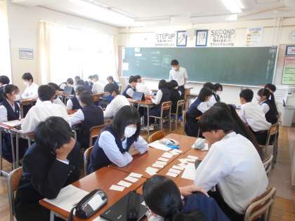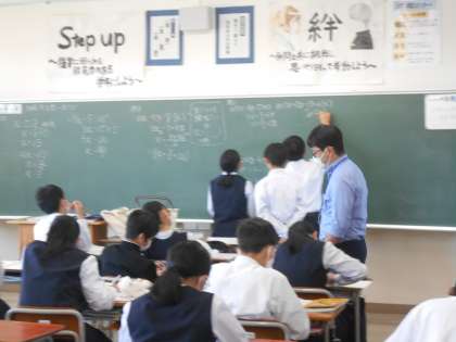 2年・授業風景 公開日 2023/05/17 更新日 2023/05/17 2学年 5月17日(水) 1限 今日は、高めの気温の中、一日が始まりました。 生徒たちは、学習内容を理解しようと、朝から一生懸命です。 (写真 上:2年1組 国語「熟語の構成」) (写真 中:2年2組 数学「方程式」) (写真 下:2年5組 道徳「いじめについて」)