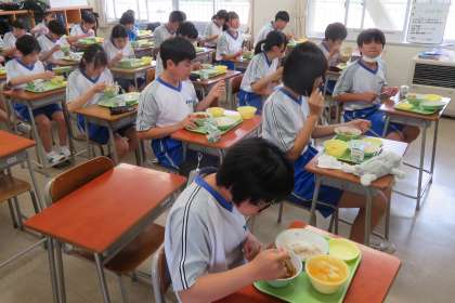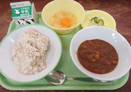 カレーライス?違います!ハヤシライスです! 公開日 2023/05/22 更新日 2023/05/22 山室中学校のページ 5月22日(月) 給食 今日の献立は、「たべキリンハヤシ、麦ごはん、牛乳、白菜サラダ、フルーツミックス」でした。(写真:上) 今日から、体育大会の練習が本格的に始まったので、腹ペコです。 (写真 中:2年2組の様子 下:2年4組のようす) みんな、たべキリンしましたか?