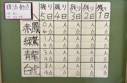 体育大会・団活動点 公開日 2023/05/23 更新日 2023/05/23 山室中学校のページ 5月23日(火) 1階の事務室前の掲示板に、「団活動点」が掲示されています。 毎日、チェックする習慣を付けましょう!