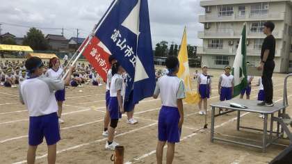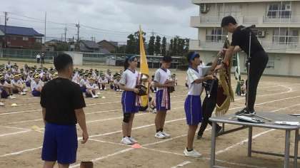 体育大会・全体練習・その2 公開日 2023/05/23 更新日 2023/05/23 山室中学校のページ 5月23日(火) 4限 (写真 上:国旗掲揚の練習) (写真 中:優勝旗・優勝杯返還の練習) (写真 下:宣誓の練習) 団リーダーの意識が高く、締まった練習になりました。