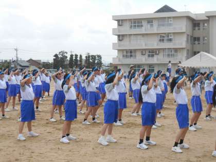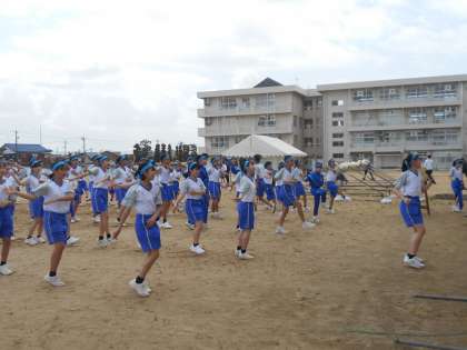 体育大会・団活動・その2 公開日 2023/05/23 更新日 2023/05/23 山室中学校のページ 5月23日(火) 5限 お天気もよくなってきました。 午後からは団活動の時間です。 青龍団が、誠道館前で練習しています。 青空にハチマキがよく映えています。 声を掛け合って細かな動きをそろえています。