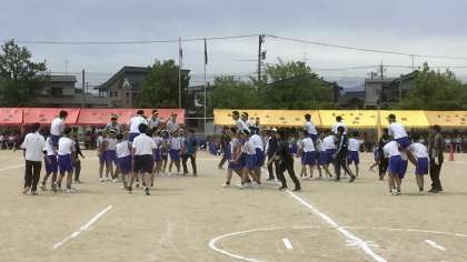 体育大会予行・その5 公開日 2023/05/25 更新日 2023/05/25 山室中学校のページ 5月25日(木) 9:55 3年男子団体種目は騎馬戦です。 今日は予選を実施し、当日の決勝戦は青龍団と緑鷲団になりました。