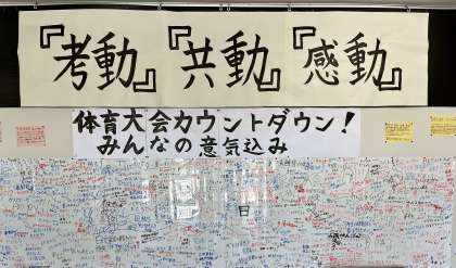 体育大会・みんなの意気込み 公開日 2023/05/25 更新日 2023/05/25 山室中学校のページ 5月25日(木) 17:30 生徒玄関前の「みんなの意気込み(メッセージボード)」を見ましたか? みんなの熱い思いがぎっしりです!