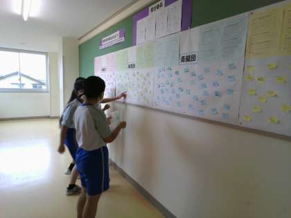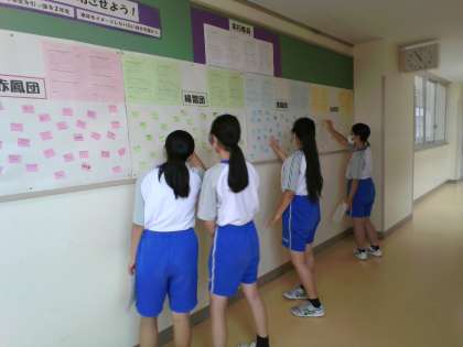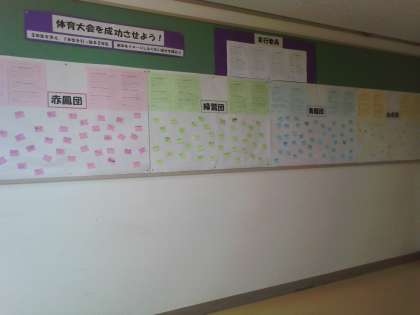 2年・団員の意気込み 公開日 2023/05/26 更新日 2023/05/26 2学年 5月26日(金) 3限 最後の団練習を終え、係活動の時間です。 自分の団への意気込みを書いた付箋を学年掲示板に貼りました。 「全力を出し切る!」「みんなで一つになって、とにかく楽しむ!」など、明日への想いが込められています。