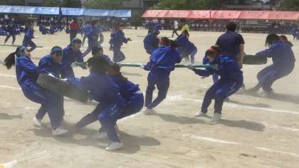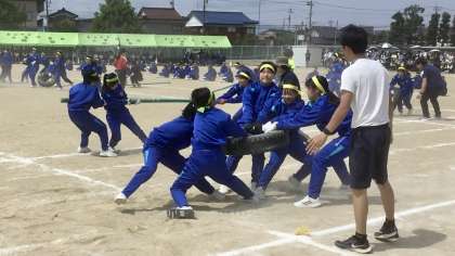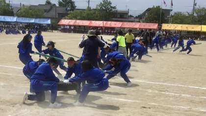 第77回 体育大会・その13 公開日 2023/05/27 更新日 2023/05/27 山室中学校のページ 5月27日(土) プログラム5「スーパースティック・タイヤブラザーズ」 2年生の学年種目です。 一撃必殺の各団の勝負勘が試されます。 知力と体力のすべてをかけます! まずは女子の部です。