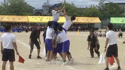 第77回 体育大会・その15 公開日 2023/05/27 更新日 2023/05/27 山室中学校のページ 5月27日(土) プログラム6「騎馬戦」 3年男子の学年種目です。 猛獣のごとく戦う3年男子のバトルに注目です。