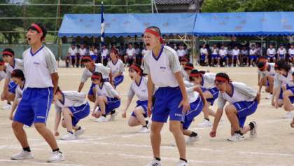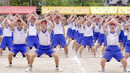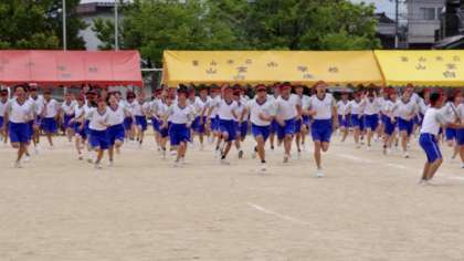 第77回 体育大会・その19 公開日 2023/05/28 更新日 2023/05/28 山室中学校のページ 5月27日(土) プログラム10「団演技」 各団は、この日のために、限られた練習時間の中で、一体感のある演技を創り上げてきました。 制限時間3分間という時間に、各団の個性あふれる団演技に注目です。 トップバッターは、赤鳳団です。