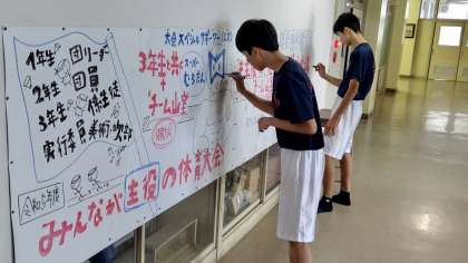 体育大会までの思いを詰め込んだ掲示板に次の目標に向けた思いを生徒が書き込んでいました。