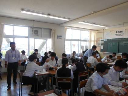 (写真 上:3年1組 国語 中:3年2組 英語 下:3年3組 数学)