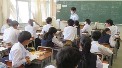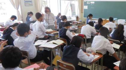(写真 上:2年1組 国語「クマゼミ増加の原因を探る」)
