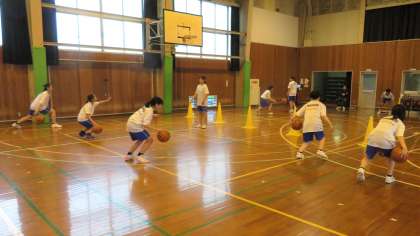 6月2日(金)の部活動・その1 公開日 2023/06/02 更新日 2023/06/02 部活動 6月2日(金) 16:30 第1体育館では、男子バスケとボール部(写真:上)、女子バスケットボール部(写真:中)、バレーボール部(写真:下)が活動しています。 雨の日は、少ないスペースで、効率よく練習しています。