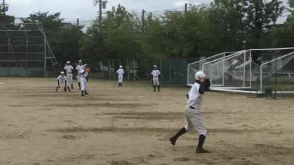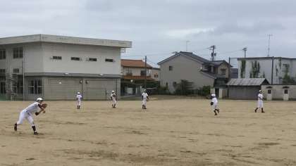 6月3日(土)の部活動・その1 公開日 2023/06/03 更新日 2023/06/03 部活動 6月3日(土) 9:00 気温は20度、天気は晴れ。 6月最初の休日は、天気が回復し、青空が広がっています。 市総合選手権大会まで2週間となり、部活動の気合いが入ってます! 早速、野球部が朝から練習しています。 昨日の雨でグラウンドコンディションがよくないので、グラウンド西側でボール回しをしています。 何度も何度も基礎練を繰り返し、からだに覚えさせています。