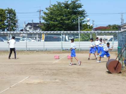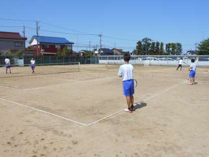 男子ソフトテニス部は、青空の下、朝から活動をしています。