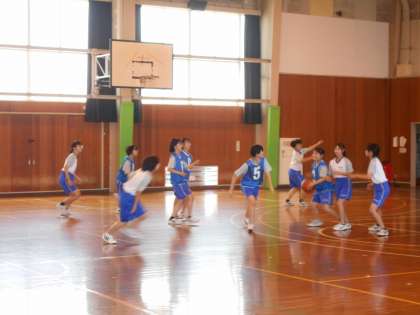 第1体育館では、皆の声援を受けつつ、楽しくバスケットボールをしています。