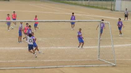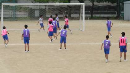 3年3組男子の体育は、グラウンドで、サッカーです。