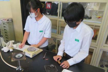 2年2組の理科は、第2理科室で、金属を熱する前後の質量の変化を調べる実験を行いました。