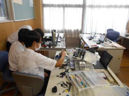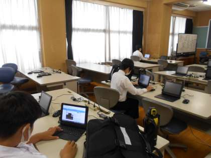 6月13日(火) コンピュータ室では、コンピュータ部がそれぞれの課題に取り組んでいます。