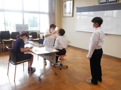 歯科検診 公開日 2023/06/14 更新日 2023/06/14 山室中学校のページ 6月14日(水) 5限 13:30から歯科検診が始まっています。 2年生と1年4、5組の生徒たちが、一生付き合う大切な歯をしっかりと診てもらっています。