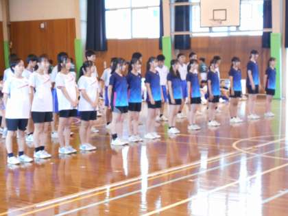 壮行会・その6 公開日 2023/06/14 更新日 2023/06/14 山室中学校のページ 6月14日(水) 6限 練習の成果を発揮したい、悔いのないよう諦めずに頑張りたい、まっすぐな思いが聞かれました。 (写真 上:女子バドミントン部 中:男子バドミントン部) (写真 下:女子バスケットボール部)