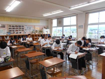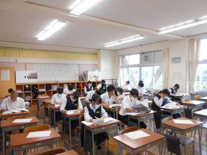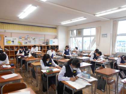 3年生は、自分の教室で集中して課題に取り組んでいます。