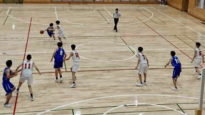男子バスケットボール部の準決勝の相手は、強豪奥田中です。