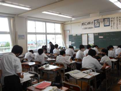 1年生は、テストの予想問題をつくったり、自主学習を進めたりしています。