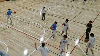 市民体育大会・2日目・その2 公開日 2023/07/02 更新日 2023/07/02 部活動 7月2日(日) 10:00 男子バスケットボール部は、2000年体育館で、新庄中と対戦し、38対25で勝利しました。 ▼10:25からの東部中との準決勝に向けて、最後の調整中