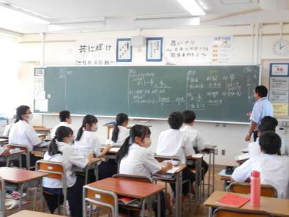 1年・授業風景・その2 公開日 2023/07/03 更新日 2023/07/03 1学年 7月3日(月) 5限 給食を食べ、お腹がいっぱいになっている5限の授業です。 少人数で計算の学習にじっくりと取り組むクラス、スピーチに向けて準備に取り組むクラス、1年生は頑張っています。 (写真 上:1年3組 数学「文字を使った式の表し方」) (写真 中:1年3組 数学「速さの単位」) (写真 下:1年5組 国語「話の構成を工夫しよう」)