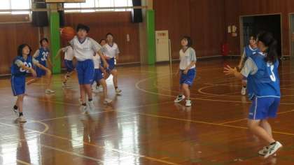 クラス対抗で、1分間のパスゲームをどんどん繰り返しています。