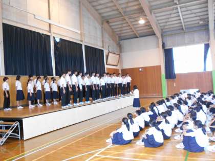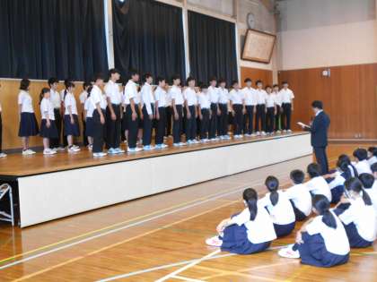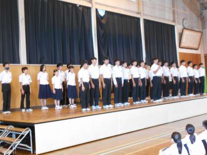 壮行会・その4 公開日 2023/07/05 更新日 2023/07/05 山室中学校のページ 7月5日(水) 6限 出場選手紹介のあと、生徒会長の激励の言葉、選手代表の言葉、教頭先生の激励の言葉が続きました。 応援する生徒も、最後までしっかりとした態度で会に臨むことができました。 選手のみなさんの健闘を祈ります!