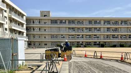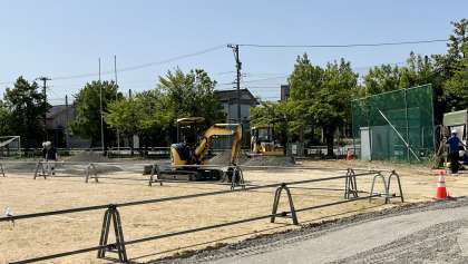 テニスコート横の南門付近の工事が、急ピッチで進んでいます。