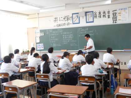 1年・授業風景・その1 公開日 2023/07/07 更新日 2023/07/07 1学年 7月7日(金) 4限 数学の授業では、計算問題に黙々と取り組み、英語の授業では、先生の説明を聞いて時刻の尋ね方や答え方をマスターしようとしています。 涼しい教室の中で、生徒たちはより集中して頑張っています。 (写真 上:1年1組 数学「1次式の計算」) (写真 中:1年1組 数学「同類項をまとめる計算を覚えよう」) (写真 下:1年2組 英語「時刻たずねたり答えたりしよう」)