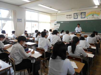 3年・授業風景・その1 公開日 2023/07/11 更新日 2023/07/11 3学年 7月11日(火) 3限 先生と生徒の和やかにやりとりする場面、実力テストの答案が返却され、先生から激励を受けている場面、先生に導かれ張り切って歌っている場面です。 (写真 上:3年1組 理科「植物の有性生殖」) (写真 中:3年2組 数学「実力テスト返却」) (写真 下:3年3組 音楽「『花は咲く』をかみしめながら歌おう」)