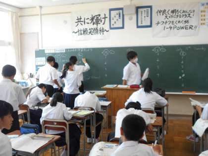 既習内容を熱心に復習したり、まつり縫いに向けて準備を整えたりしている場面です。