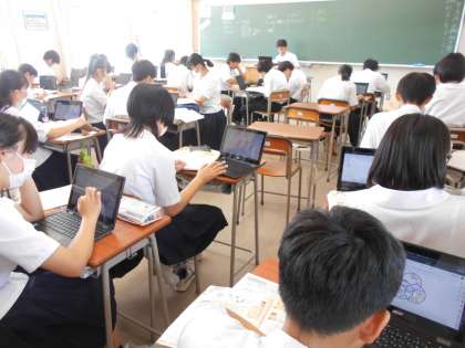 2年・授業風景・その1 公開日 2023/07/13 更新日 2023/07/13 2学年 7月13日(木) 3限 クロムブックでのまとめやプリント学習、古文の音読等、それぞれの時間ですが、最後まで集中して取り組んでいる生徒たちです。 (写真 上:2年1組 社会「歴史のまとめ」) (写真 中:2年2組 理科「プリント学習」) (写真 下:2年3組 国語「徒然草」)