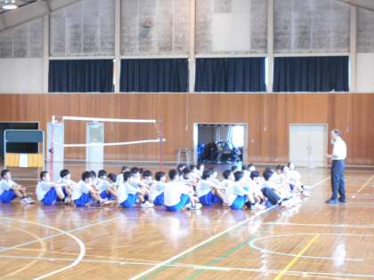 (写真 上:1年3組 体育「バレーボール」)