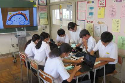 3年・授業風景 公開日 2023/07/14 更新日 2023/07/14 3学年 7月14日(金) 5限 今週も終わろうとしています。 3年生は「授業が基本」を大切に、学習しています。 (写真 上:3年1組 家庭科「幼児が喜ぶ変わり絵本」) (写真 中:3年4組 社会「立憲主義」) (写真 下:3年5組 国語「俳句の可能性」)