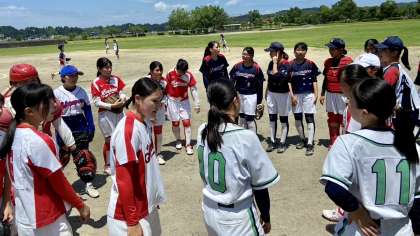 ソフトボール部は、羽根ピースフル公園で、来週開催される県民体育大会に富山市Cチームの一員として参加するため、今日は呉羽中学校と速星中学校と練習試合を行いました。