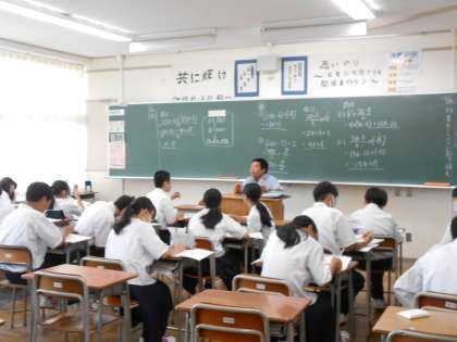 1年・授業風景・その2 公開日 2023/07/20 更新日 2023/07/20 1学年 7月20日(木) 1限 1学期の教科の授業は、今日が最終日です。 今朝は、少し過ごしやすい気候になっています。 1年生は、落ち着いて学習に臨んでいます。 (写真 上、中:1年3組 数学「文字式の計算」) (写真 下:1年5組 体育「バレーボール」 )