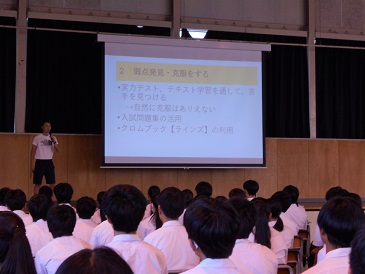 3年生は学年集会で、今学期を振り返って、学級MVPの表彰、夏休みの学習、オープンハイスクール等について行いました。