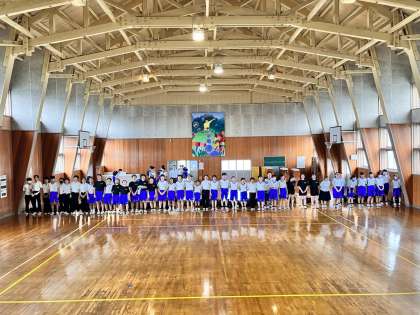 また、最後には大きな声で校歌を斉唱し、挨拶をしました。