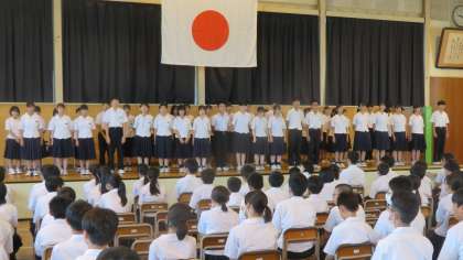 昨日の県吹奏楽コンクールで、金賞そして県代表になった吹奏楽部と、北信越大会に出場を決めた水泳部・剣道部・新体操部の壮行会を行いました。