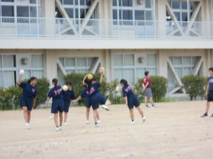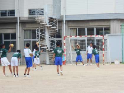 グラウンドでは、男女ハンドボール部が活動しています。