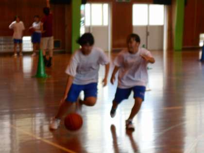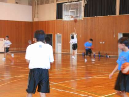 体育館では、男女バスケットボール部が活動しています。
